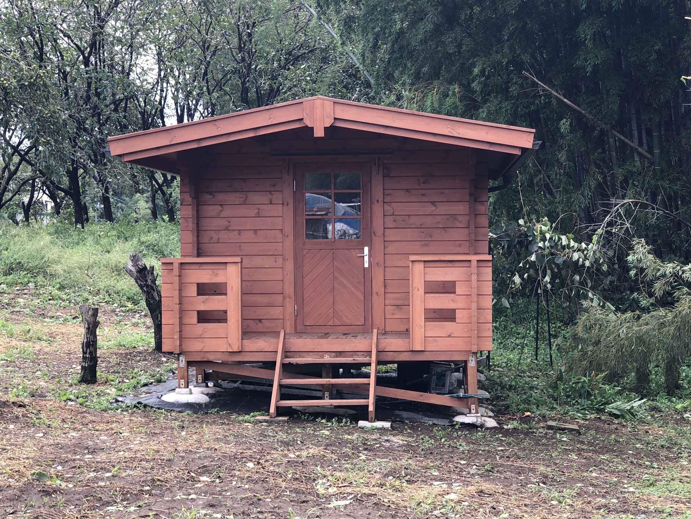 家庭菜園の休憩所にと2年前に建築した『コスカA』を塗装でカラー変更しました。