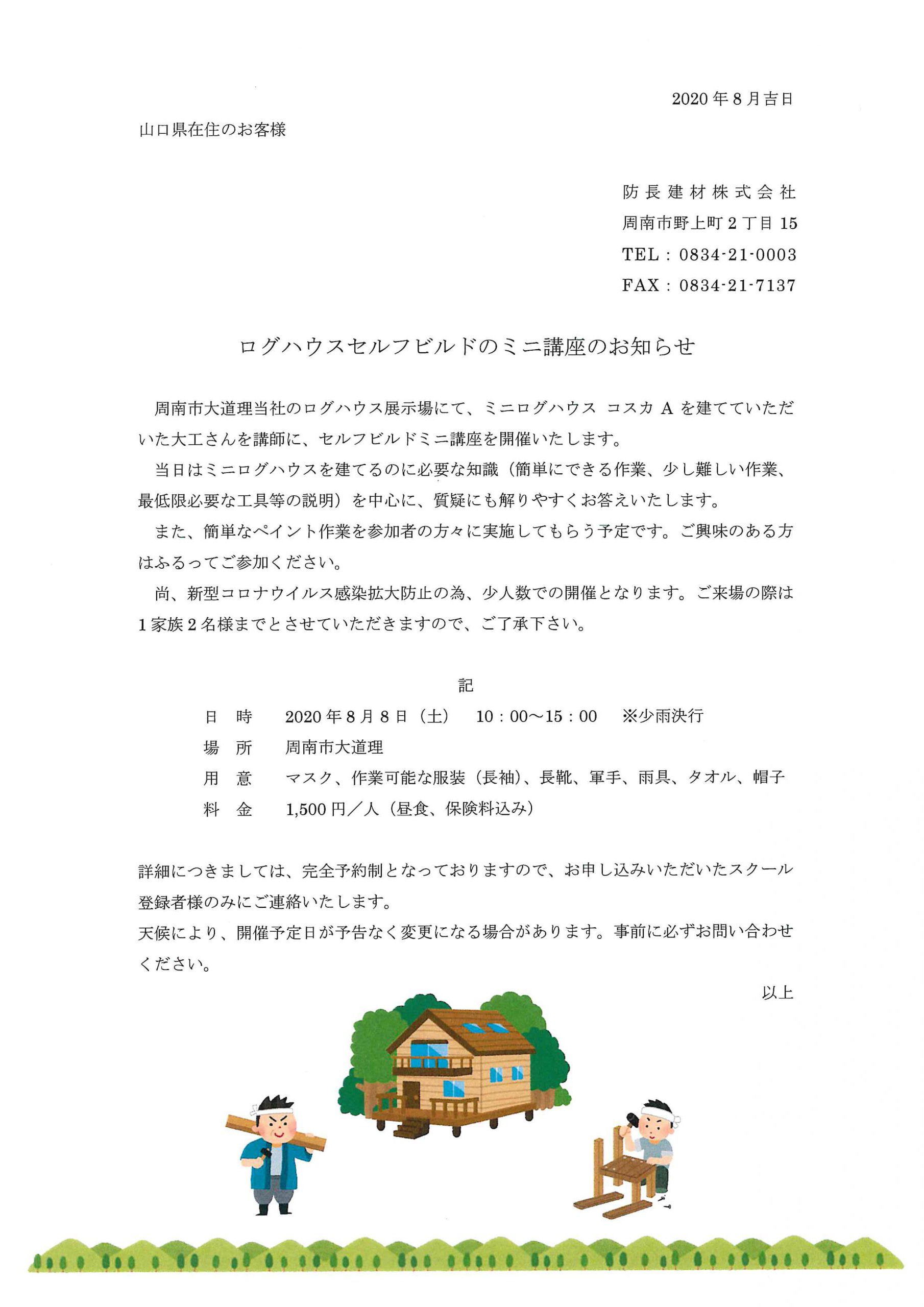 セルフビルド ミニ講座開催のお知らせ【2020年08月03日】