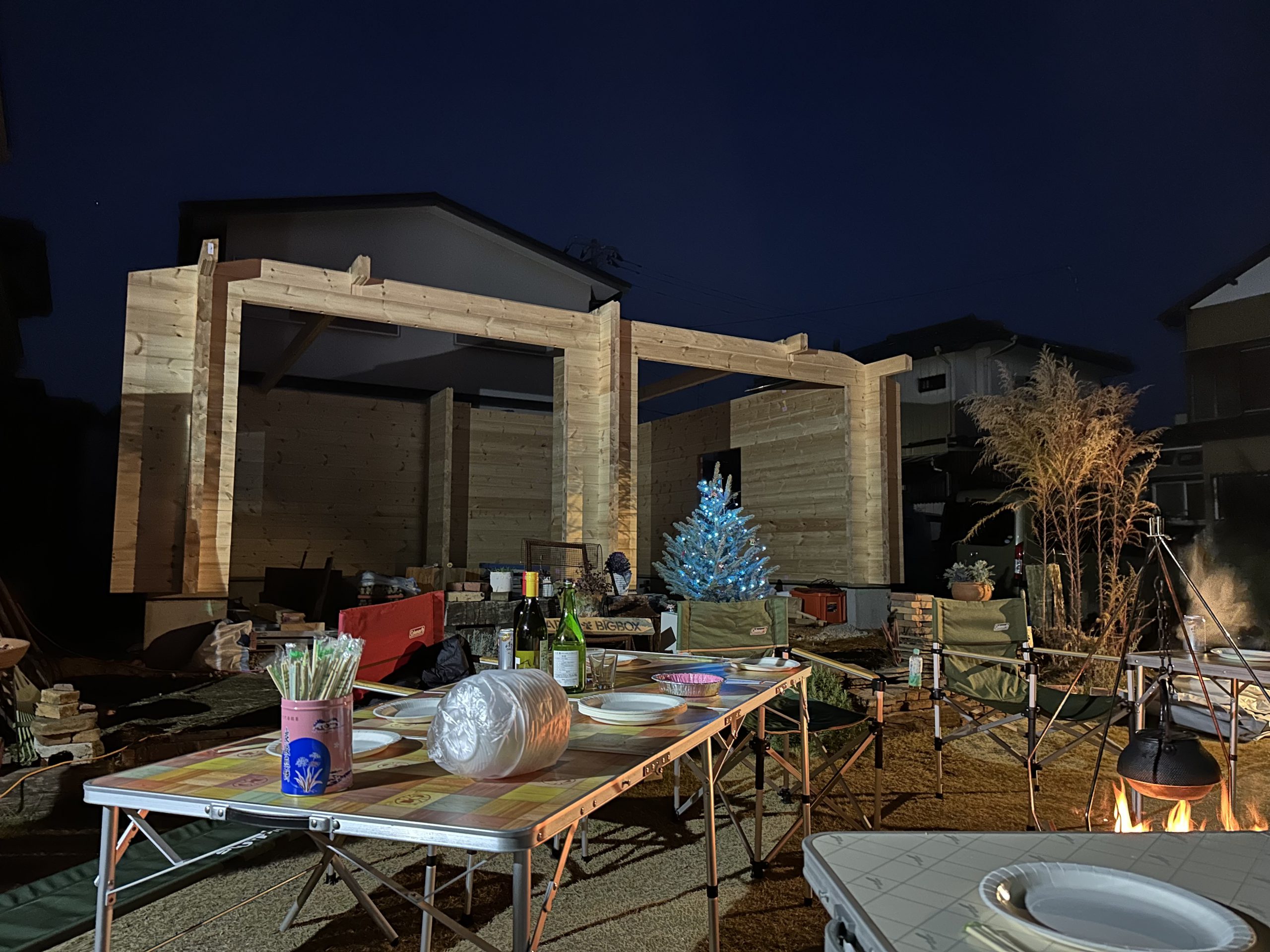 なんとセルフビルドの後は、皆さんとBBQを楽しみました。