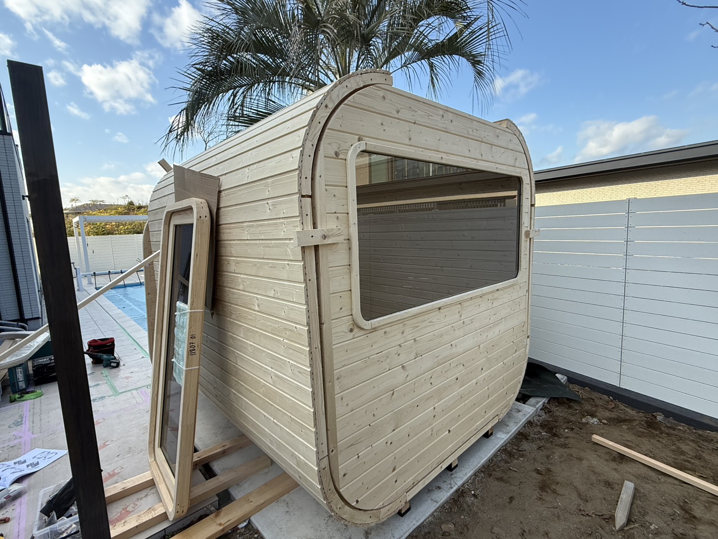 千葉県富津市でスクエアサウナ「モイ」の組立工事をはじめました(^_^)👍 おそらく年内最後の施工となります。
