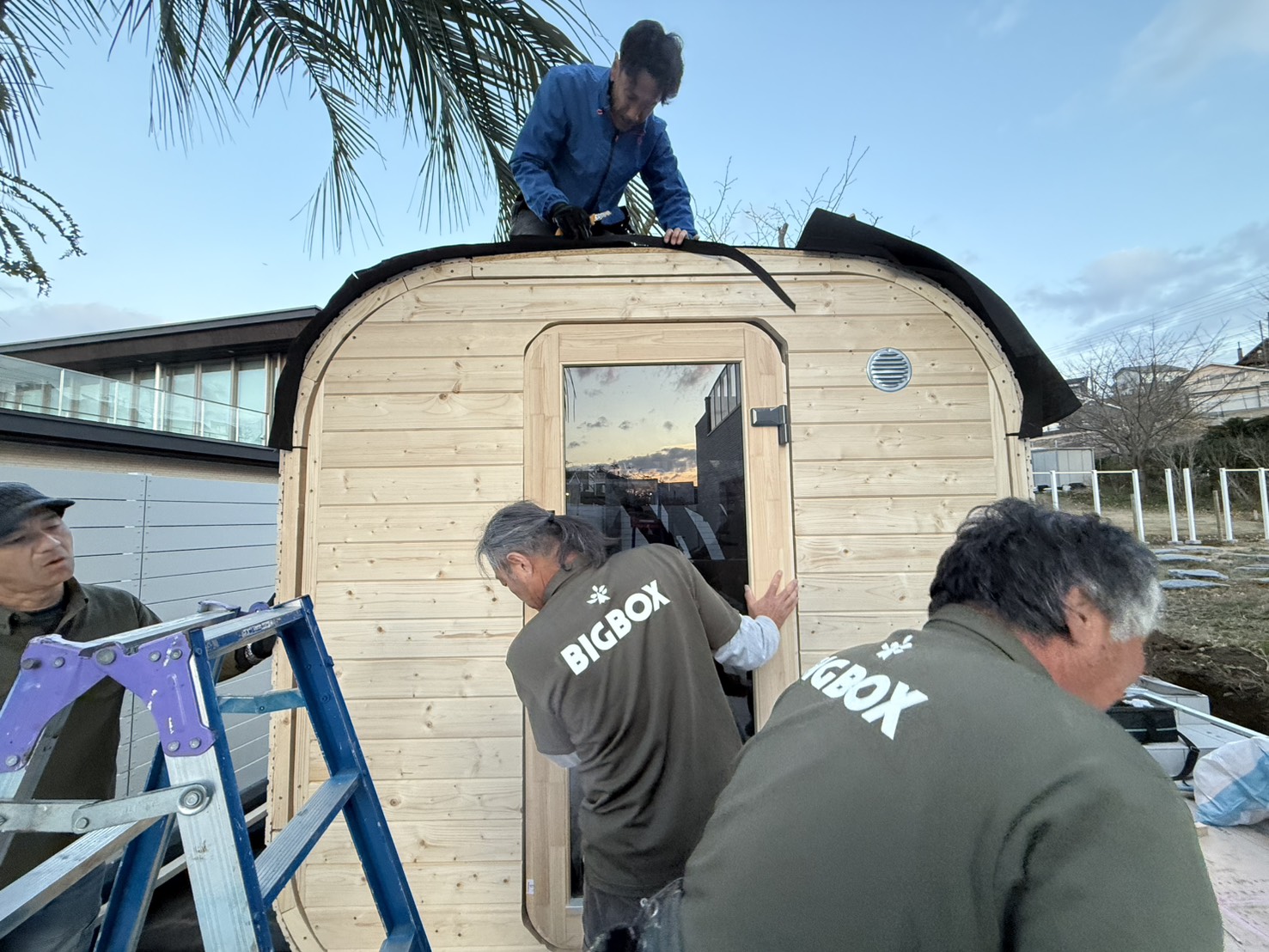 千葉県富津市でスクエアサウナ「モイ」の組立工事の2日目です(^_^)👍