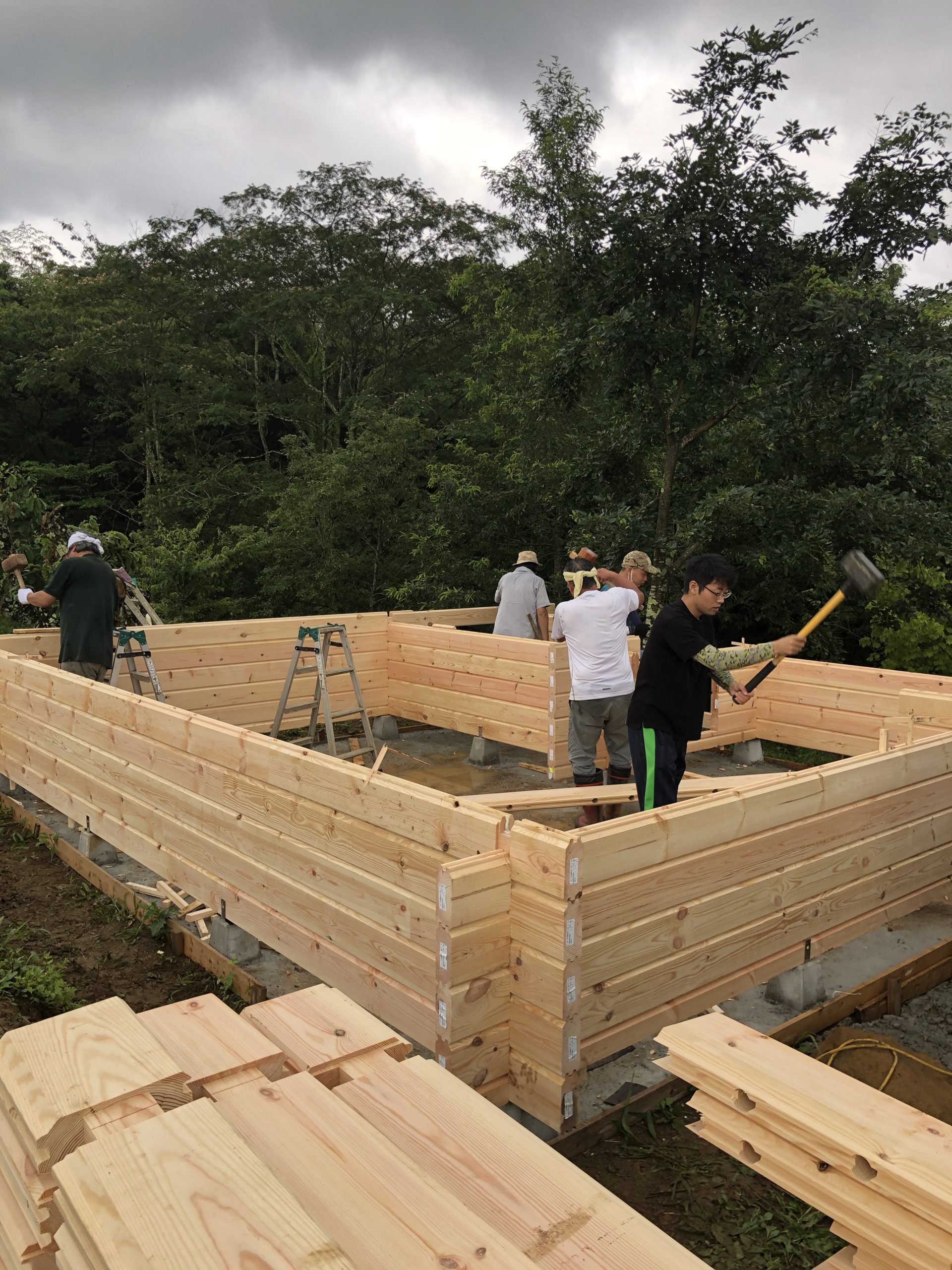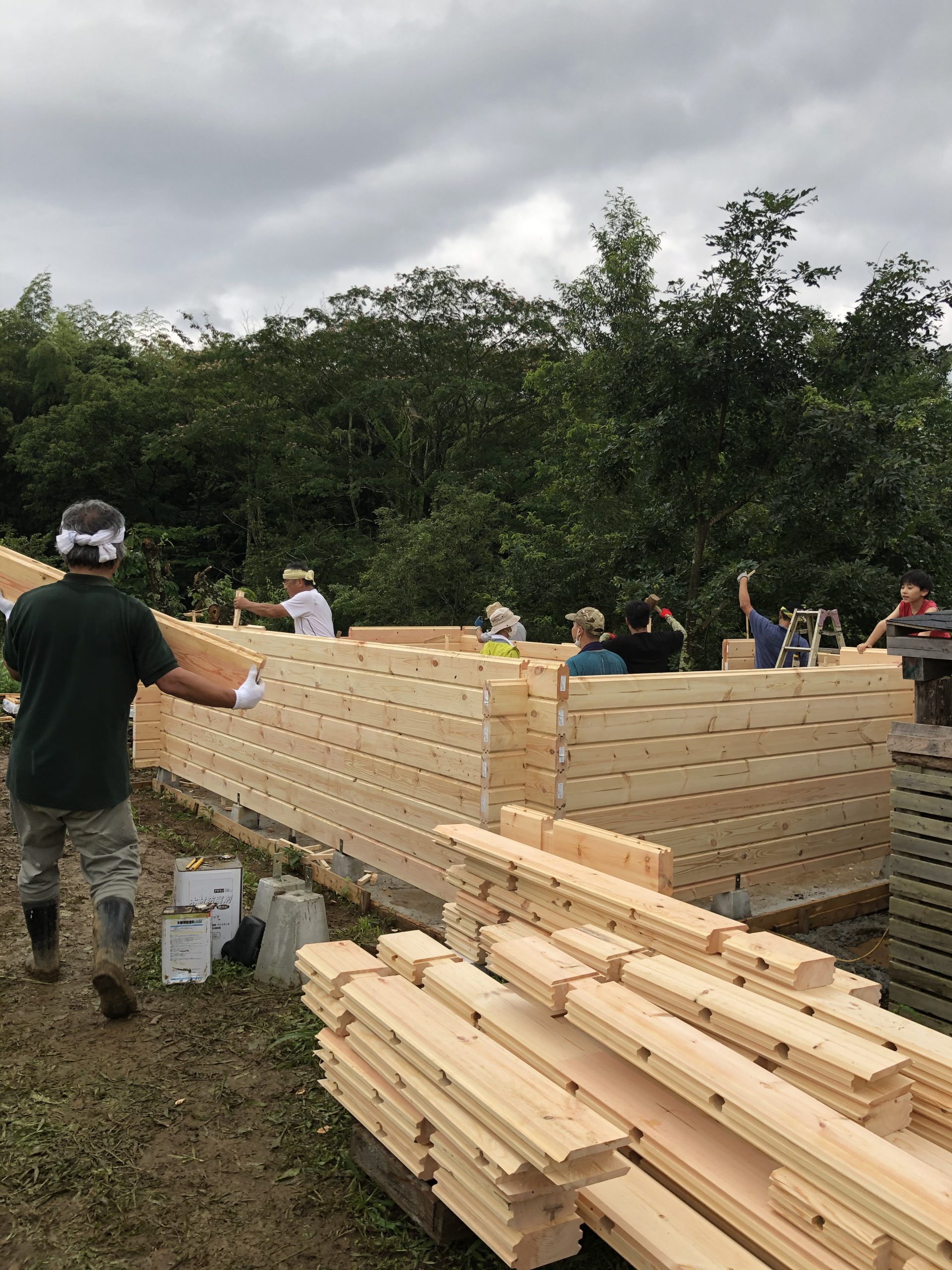 23日24日の展示棟体験見学会は、全国的にコロナ禍の中、又異常な気候で雨模様の中ですが、無事というか、何とか、雨の合間を見計らい、2日で、ログ積み上げは、棟まで積み上げまして、遠路、千葉県や奈良県又、地元岐阜県、愛知県内など参加いただき、ありがとうございました。