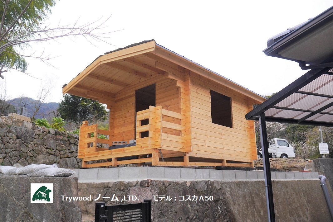 ひと月前に 御自宅の 離れ として ミニログハウス・モデル「コスカA50」  をお届けした 広島市安佐南区 “ Oさん ” 宅をアフター訪問しました。