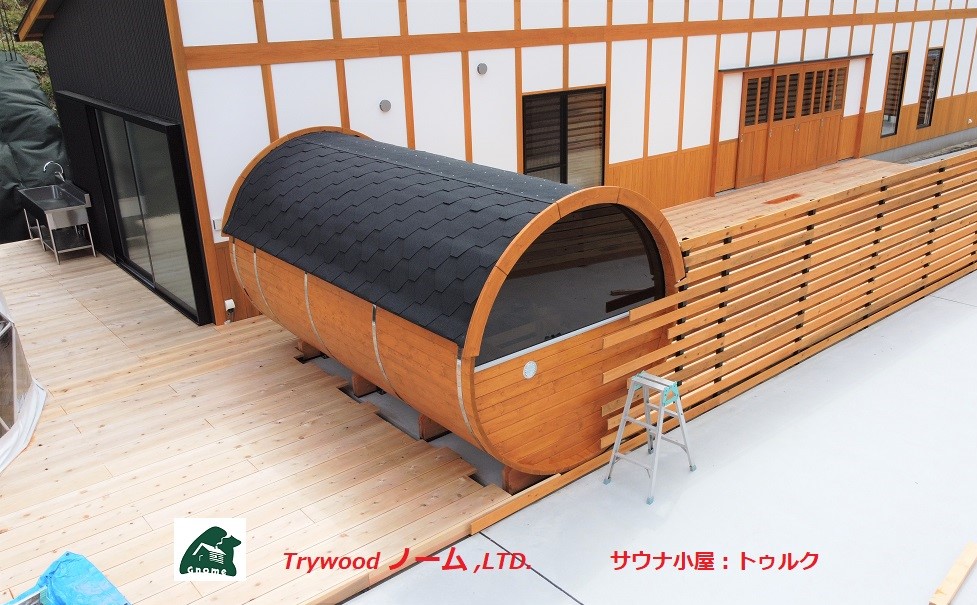 人気のバレルタイプ サウナ小屋:トゥルク が嫁いだ広島県竹原市の「グランベース竹原さん」完成間近!