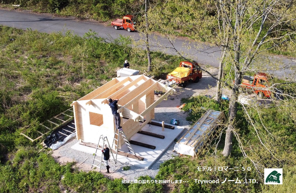 広島県山県郡北広島町にて自然を楽しまれている “ Yさん ” のアウトドア基地用のミニログハウス「ロマーニ50」組立スタート! 続きは・・・➡ こちらをご覧下さい ☚