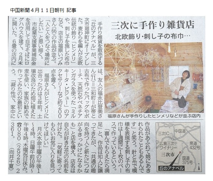 一昨年の “Sさん” に続いて「丘のアナベルさん」が中国新聞朝刊に紹介されました。 続きは・・・ ➡こちらからご覧ください ☚