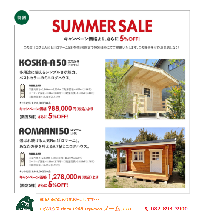 ミニログ SUMMER セール開催中 - ログハウスのビックボックスは全国どこでも施工いたします。