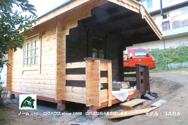 11月中旬に広島県三原市因島町にてミニログハウス「コスカA」☚ の 組立がスタートした ☚ その後をアフター訪問しました。 続きはこちら・・・➡ アフター訪問記をご覧ください ☚ モデル:コスカA50 ☚