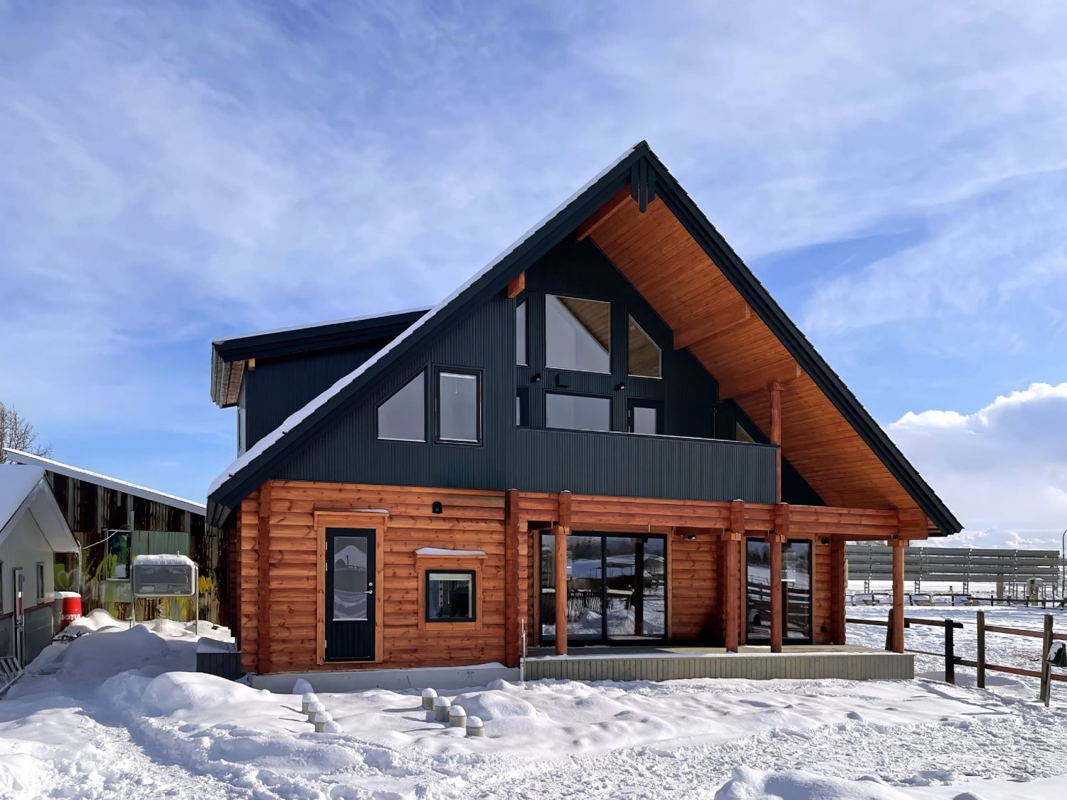 北海道恵庭市の「ドサンコ牧場」の一画に住居用としてD113ミリのログを使用した住居用ログハウスになります。
