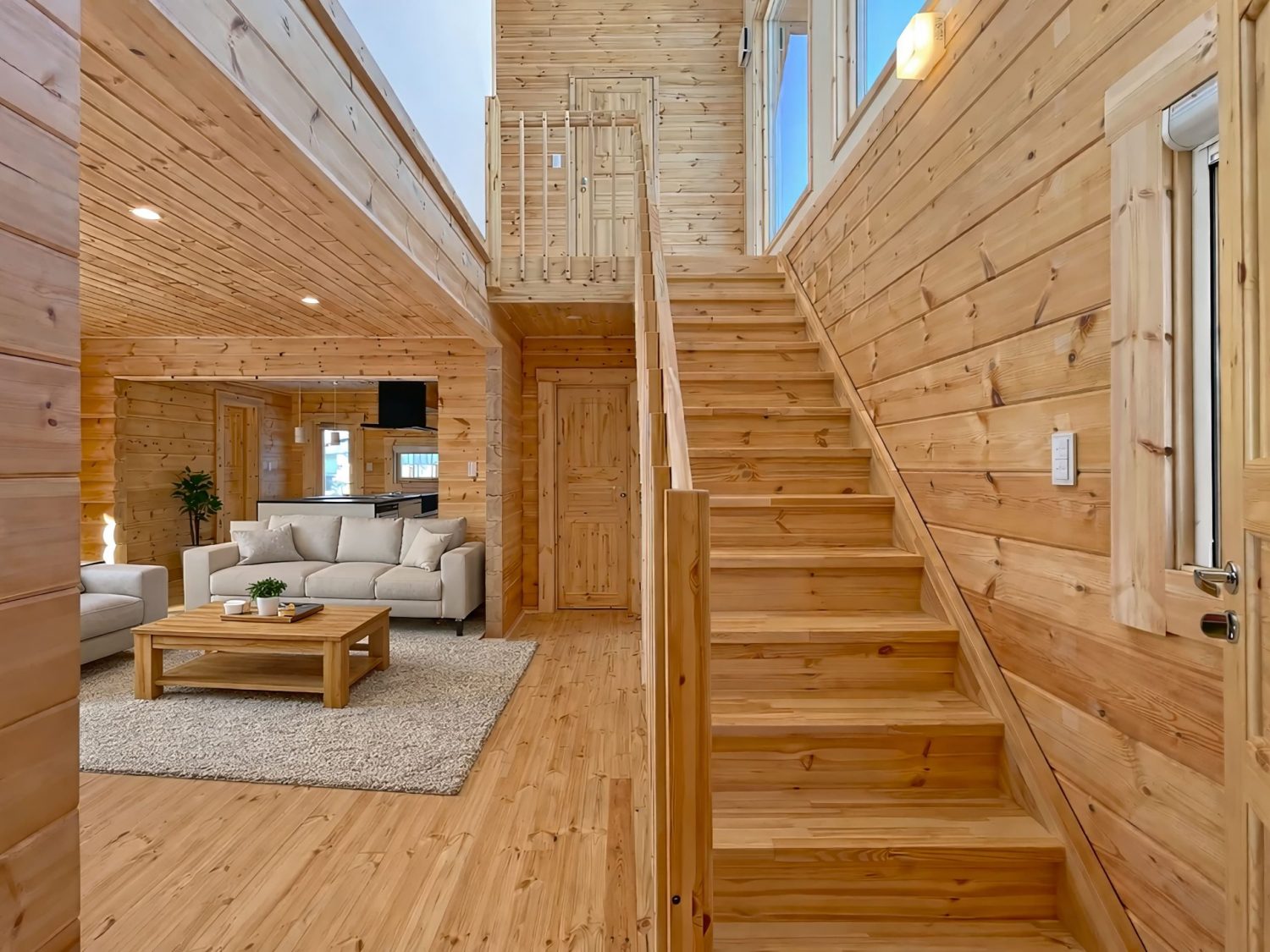 間取りは4LDKとなり、134ミリのログ厚と薪ストーブにより、厳しい冬もログハウスライフを満喫できるようになっております。