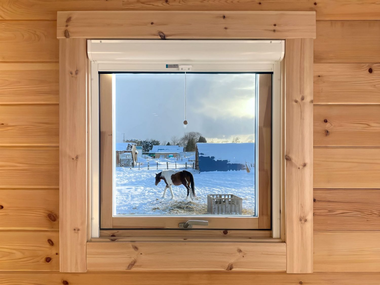 ピクチャーウインドウとしては、北海道の大自然と、優雅に佇む馬の姿が季節を通じて映り込んでいます。