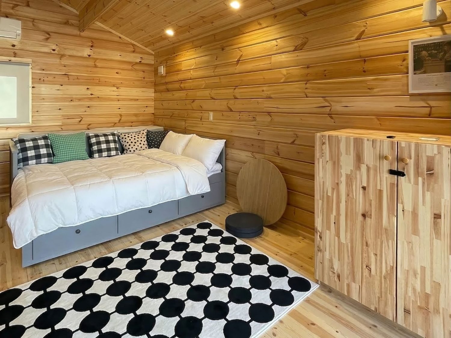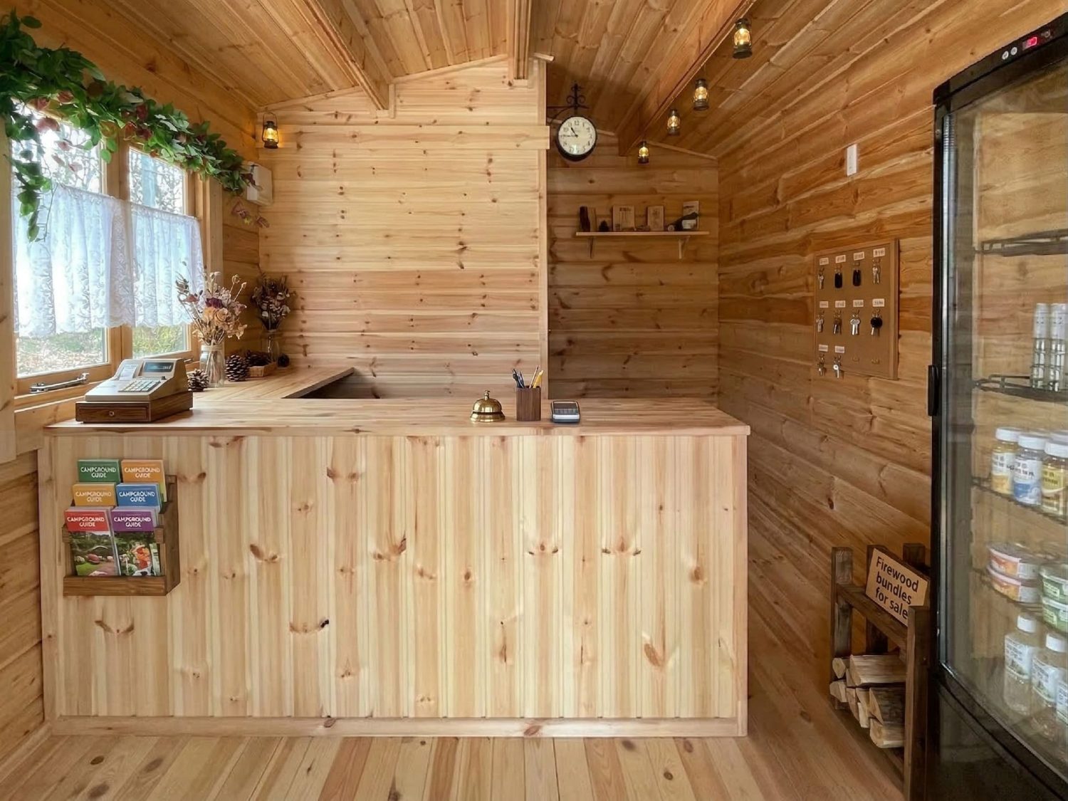 受付棟には、ミニログハウスシリーズで長い歴史のコスカC。簡易的な受付施設として、人気のサイズ(3.7坪)。宿泊棟には、お客様の旅の疲れを癒してもらえるようにサウナ付の宿泊施設として、クッカのアレンジプラン。