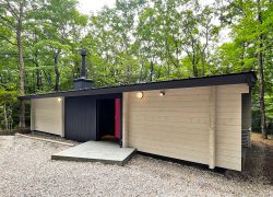 6月も終盤、梅雨の晴れ間にほぼ出来上がり間際の弊社建築のログハウス別荘の姿です。 …