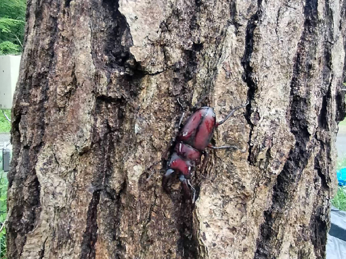 視線の先を追ってみると、なんと隣の木にクワガタが!