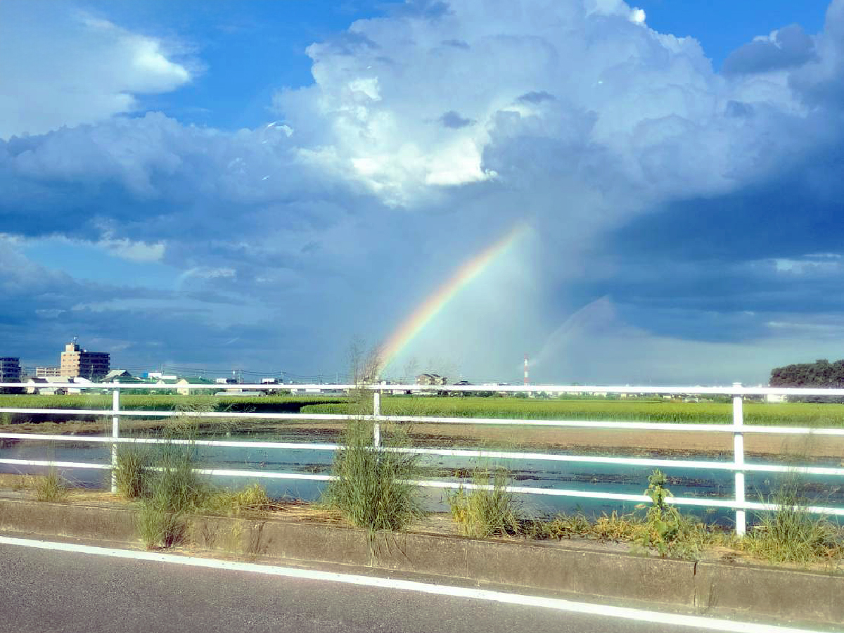 また、この時期はゲリラ豪雨に見舞われることも多く、この日もまさにバケツをひっくり返したような激しい雨が降ったのですが、雨上がりにようやく晴れたと思い、窓の外をふと見ると、見事な虹が空にかかっていたのです。