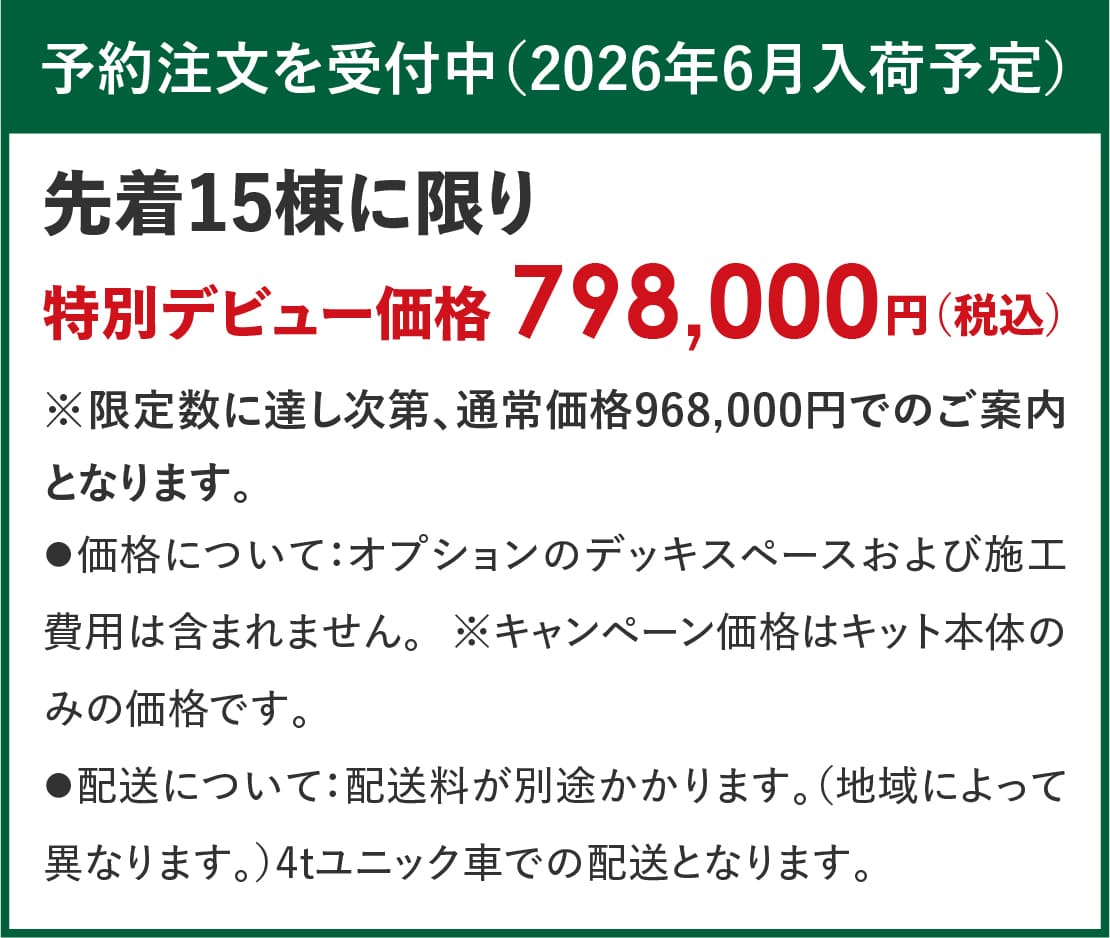 2坪サイズの小さなミニログ 棟数限定 先行予約開始 !【2025年12月26日】