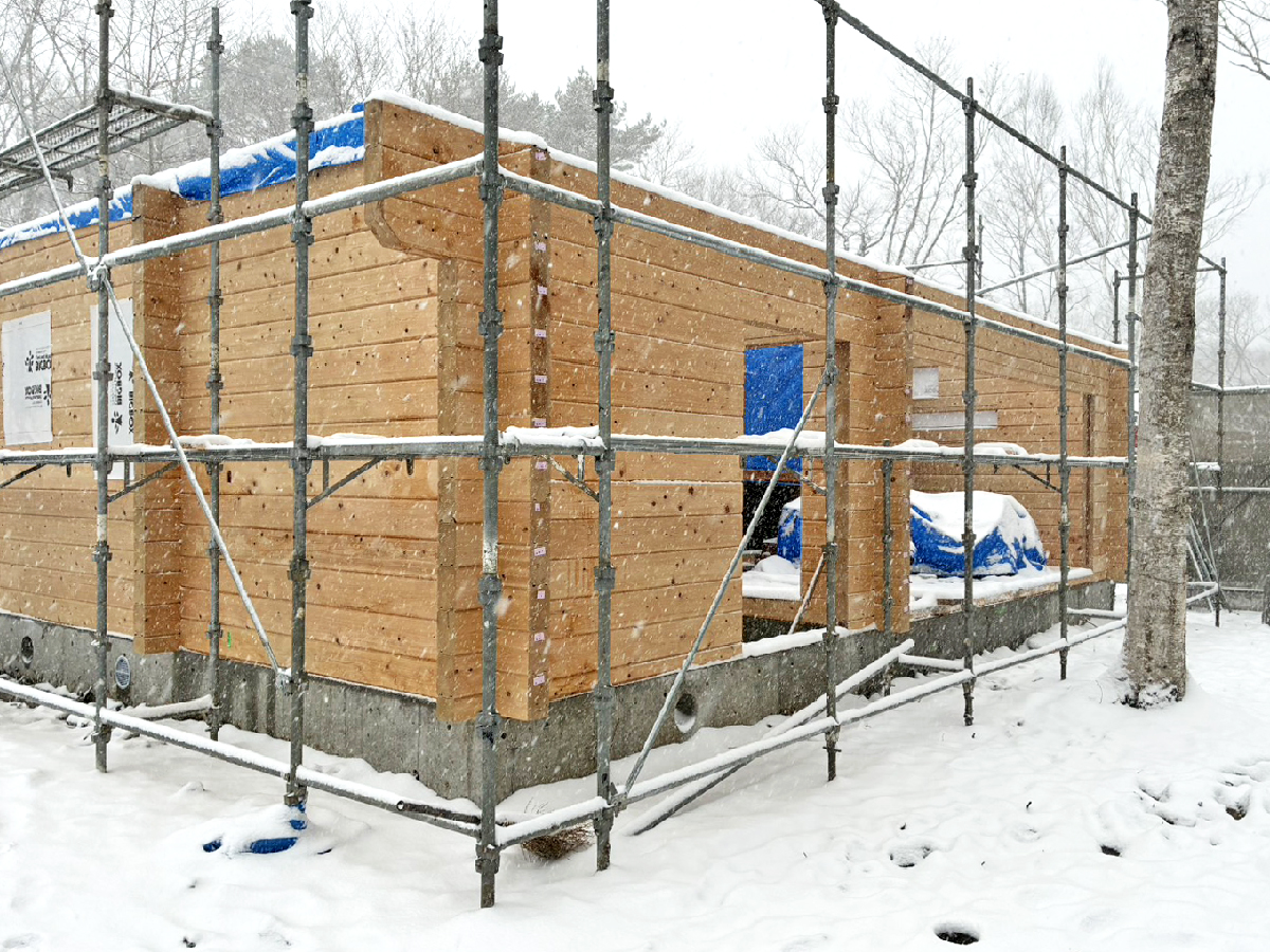 年始から雪が降る中、ログ組をしている現場を見ると、こちらも頑張らなくてはと気合が入りいいスタートができたと思っております。