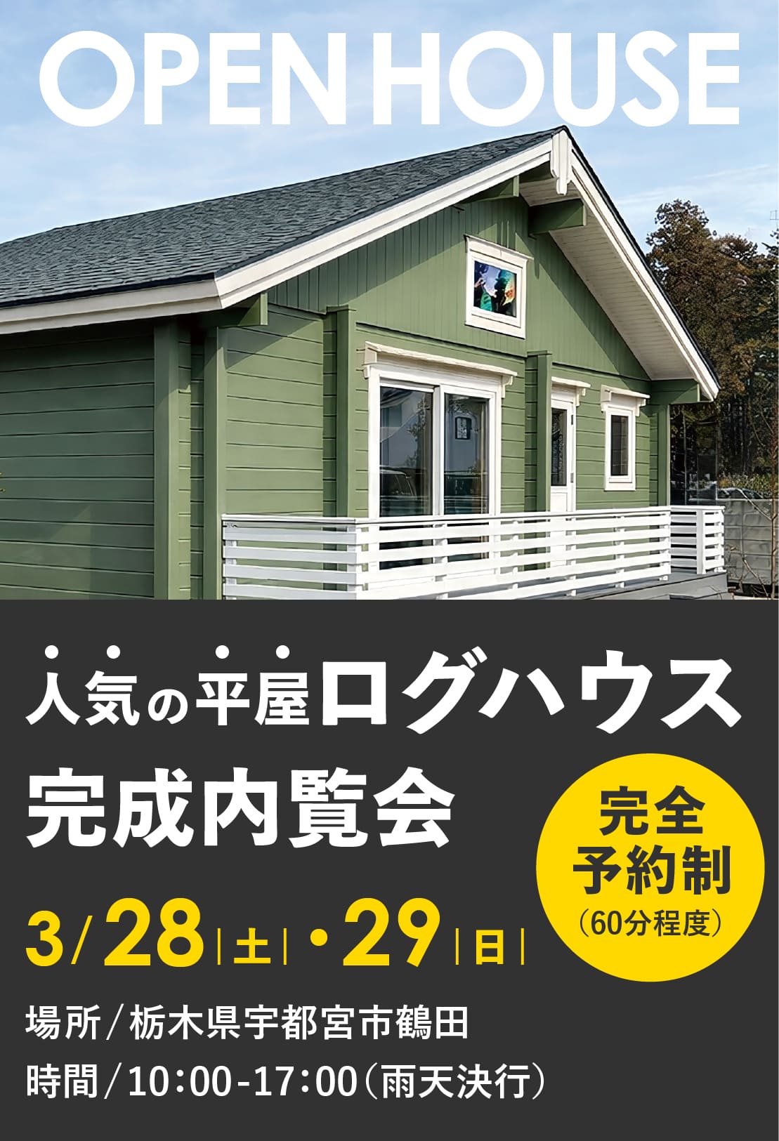 栃木県宇都宮市ログハウス完成内覧会開催(3/28,29)