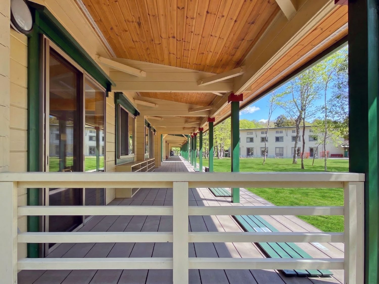 高学年のクラスで、音や専門的な設備に依存される特別な教室を必要とし、この度3棟が連なる校舎が完成。